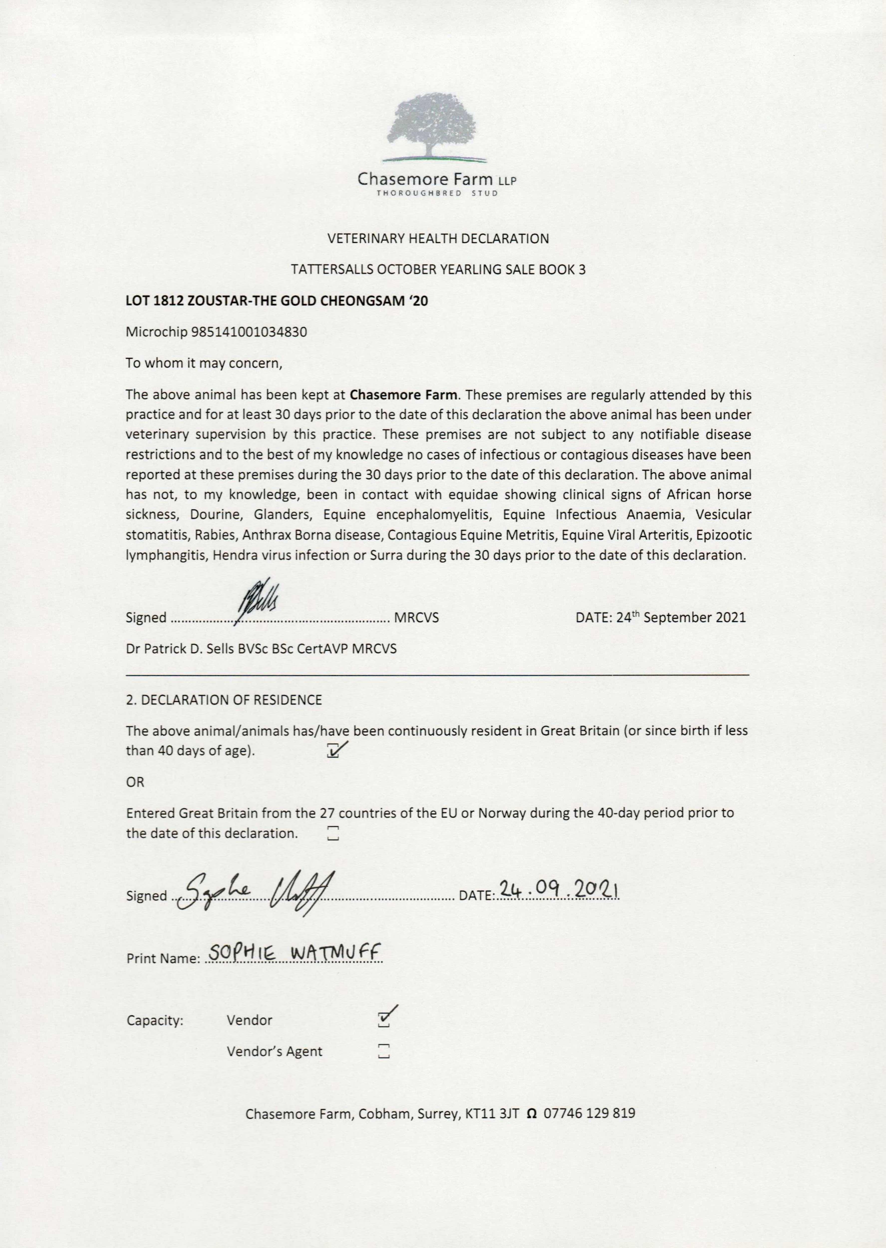 Consignor: Chasemore Farm